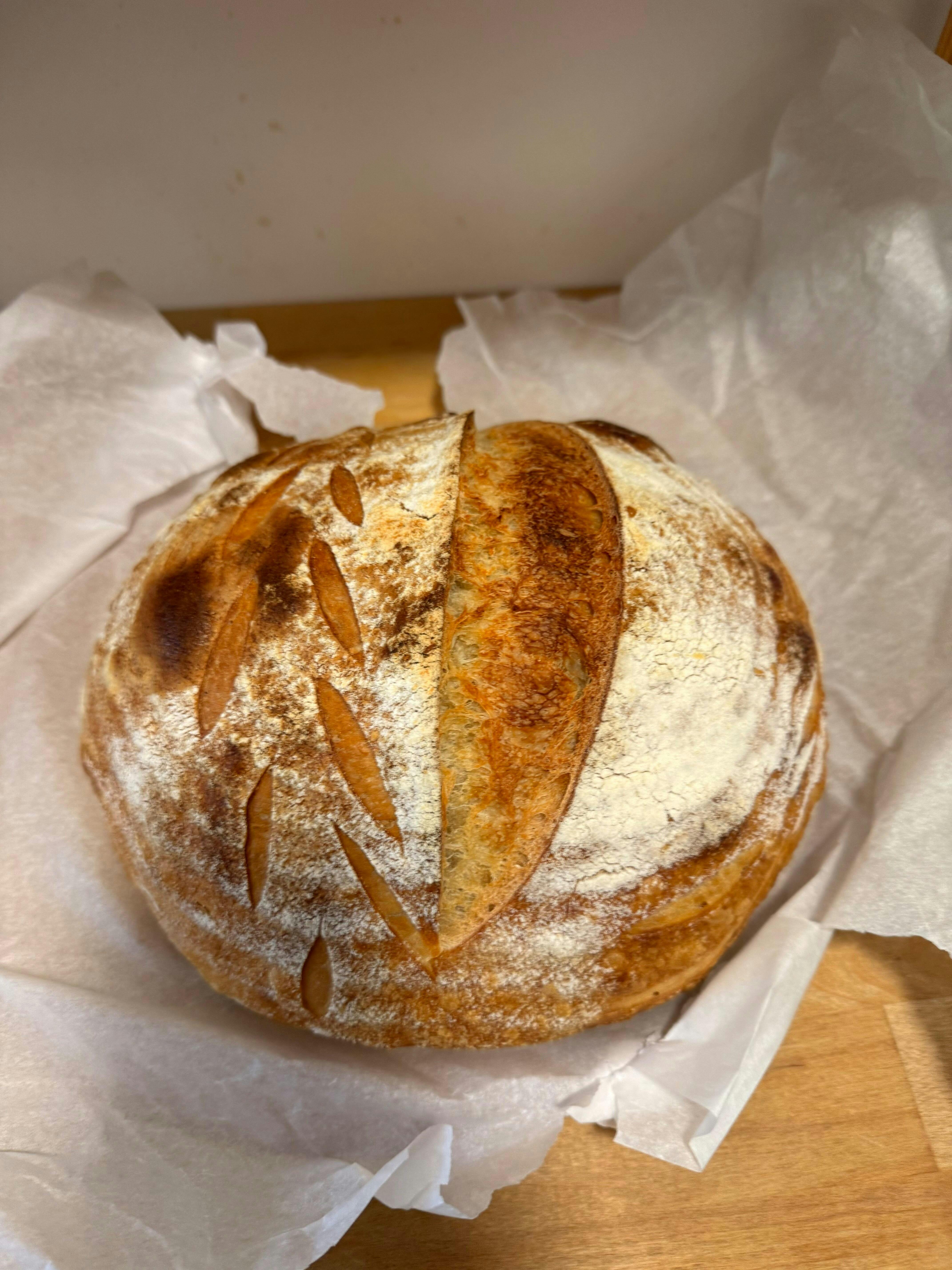 My first time purchasing as it was recommended by my sister. I immediately went online and ordered. The bread was fantastic! Much bigger than I thought it was gonna be and exactly what a sourdough loaf should be! Thank you so much. I will definitely be placing more orders in the future.